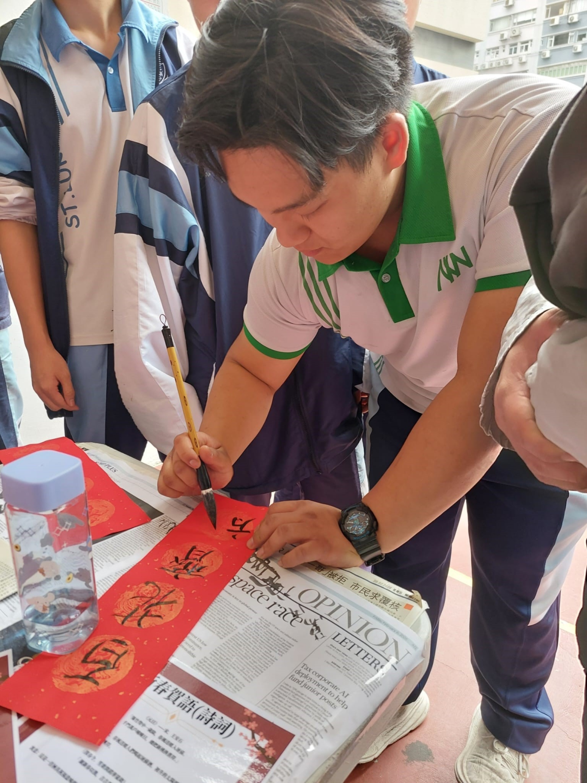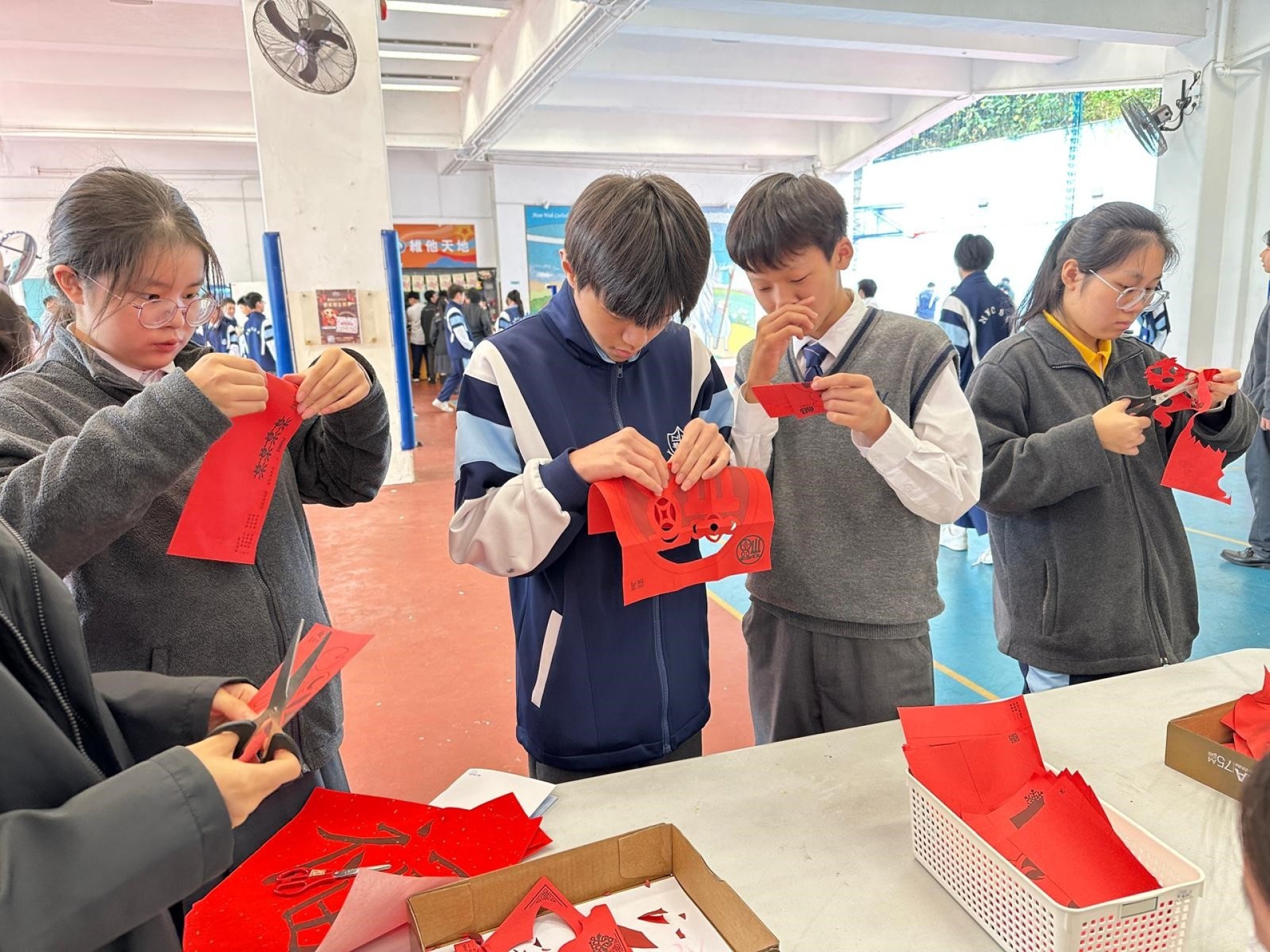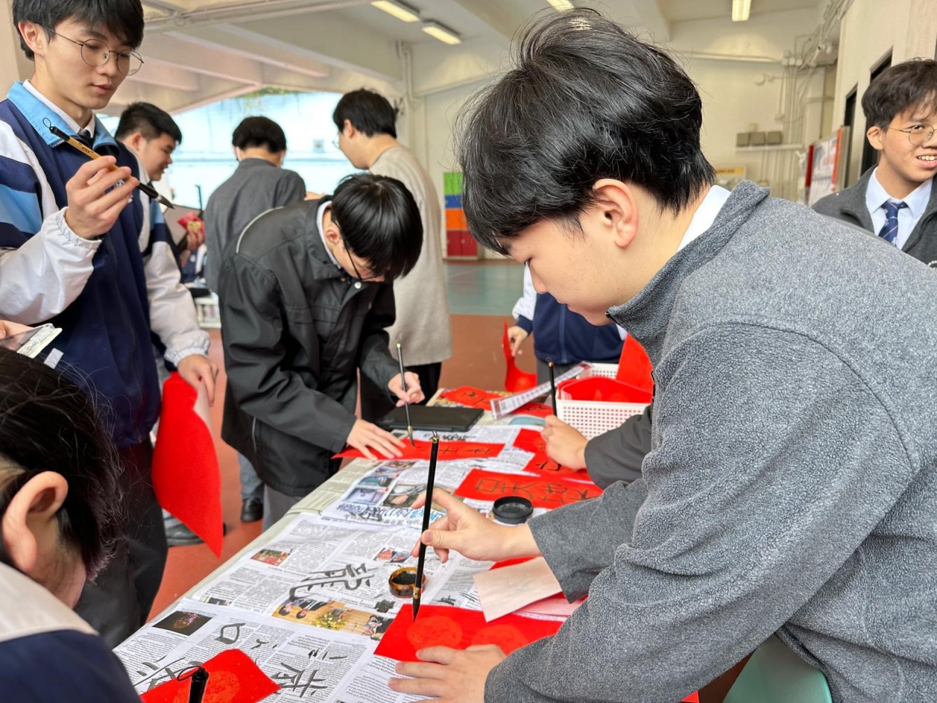 「新春書香飄南華」已於2月10日午飯時間在圖書館圓滿舉行,同學在墨香與書海之間迎接馬年,寫揮春、誦賀語、剪紅紙,讓校園處處洋溢着喜樂與祝福的年味。是次活動由閱讀推廣組聯同中文科、宗教科及普通話科攜手策劃,透過「墨香傳情」及「駿馬裁春」兩大環節,帶領同學在創作新年賀語和天主教祝福語的同時,體驗傳統剪紙藝術,感受中華文化之美與信仰的溫度。現場氣氛熱烈,歡聲笑語不絕,真正做到在閱讀中增廣見聞,在書香中迎春接福。