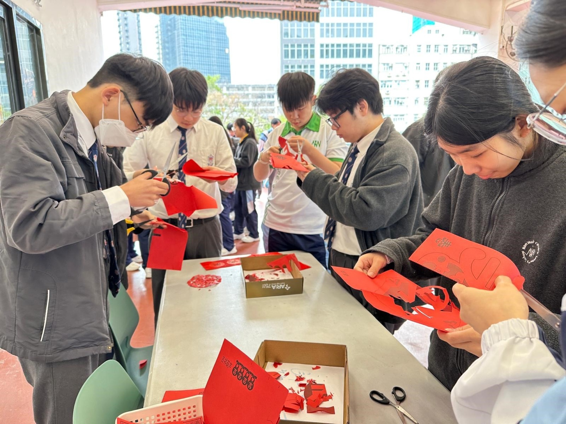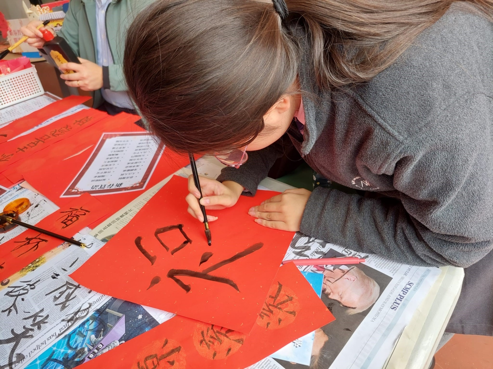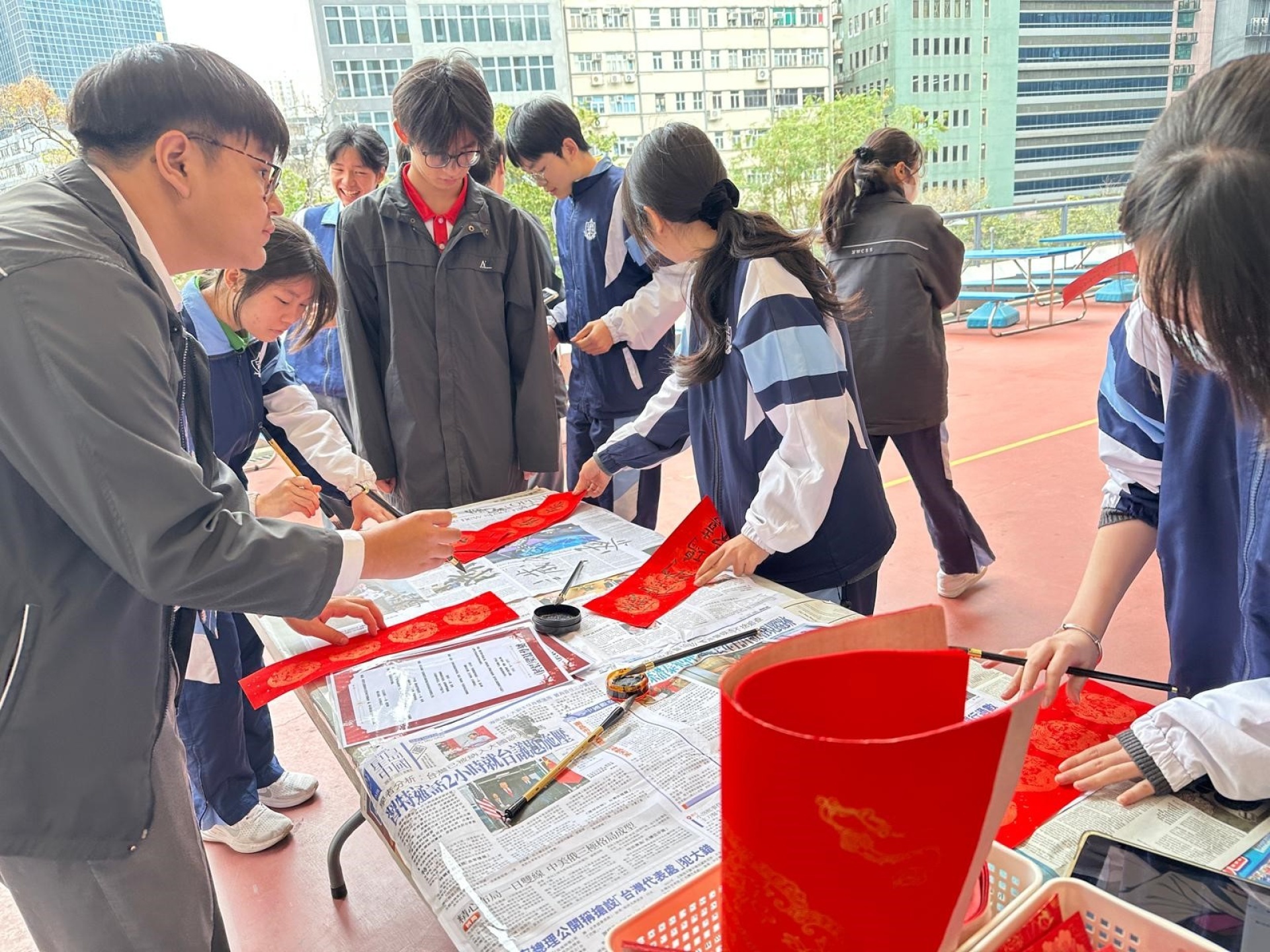 「新春書香飄南華」已於2月10日午飯時間在圖書館圓滿舉行,同學在墨香與書海之間迎接馬年,寫揮春、誦賀語、剪紅紙,讓校園處處洋溢着喜樂與祝福的年味。是次活動由閱讀推廣組聯同中文科、宗教科及普通話科攜手策劃,透過「墨香傳情」及「駿馬裁春」兩大環節,帶領同學在創作新年賀語和天主教祝福語的同時,體驗傳統剪紙藝術,感受中華文化之美與信仰的溫度。現場氣氛熱烈,歡聲笑語不絕,真正做到在閱讀中增廣見聞,在書香中迎春接福。