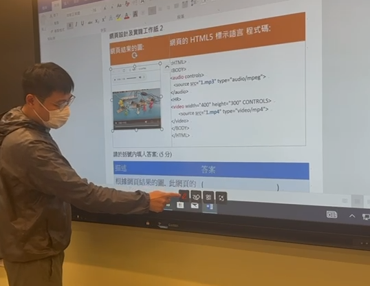 用電子白板作學與教。ICT 會教授很多電腦程式, 如果可以有互動方案, 如立即在電子白板上修改電腦程式,對學與教有很大幫助。